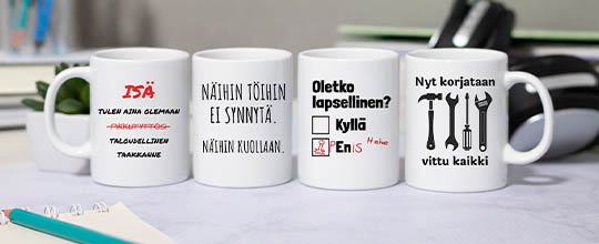 Kuppikauppa.fi tekee lahjan etsimisestä helppoa ja hauskempaa kuin koskaan. Meiltä löydät persoonalliset ja käytännölliset lahjaideat jokaiseen juhlaan ja tilanteeseen – olipa kyseessä isänpäivälahja, äitienpäivälahja, joululahja, ystävänpäivälahja, valmistujaislahja tai vaikka työkaverin läksiäiset. Hauska, lämminhenkinen tai oivaltava kuppi on lahja, joka saa hymyn huulille ja jää käyttöön pitkäksi aikaa.