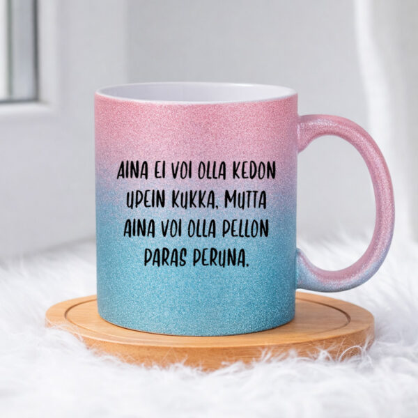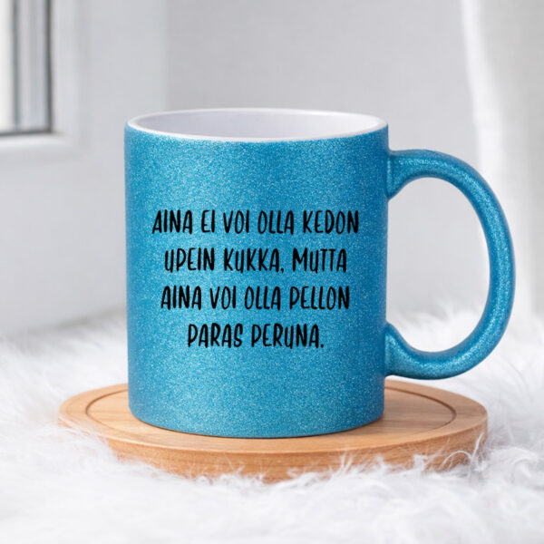 Kirjoita ensimmäinen arvio tuotteelle “Aina ei voi olla kedon upein kukka (0059) | Glittermuki 330ml”